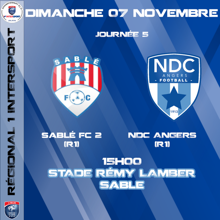 Après l'élimination en Coupe de France, le week-end dernier, notre équipe fanion peut désormais se focaliser sur le championnat. Elle se déplacera à Sablé, dans le cadre de la 5e journée de Régional 1. le match aura lieu ce dimanche à 15H.