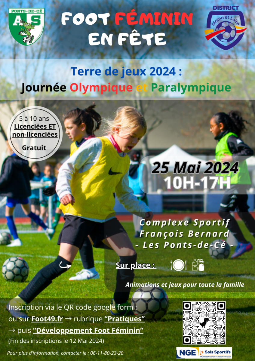 Manifestation foot 100% féminin organisée par le District de Football du Maine et Loire. Pour les jeunes filles de 5 à 11 ans (U6F aux U11F). Cette journée festive est entièrement gratuite.