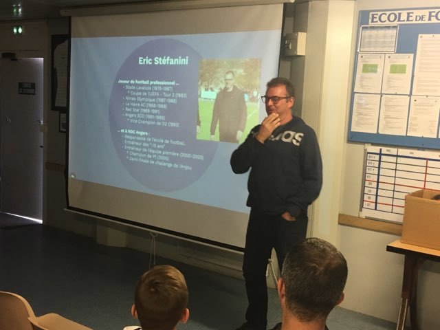 Charles Diers ancien joueur professionnel d ´Angers SCO et parrain de l'académie depuis sa création, est intervenu pour souligner l'originalité, le sérieux et le succès de ce projet unique sur la ligue des Pays de la Loire.