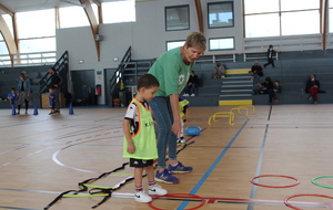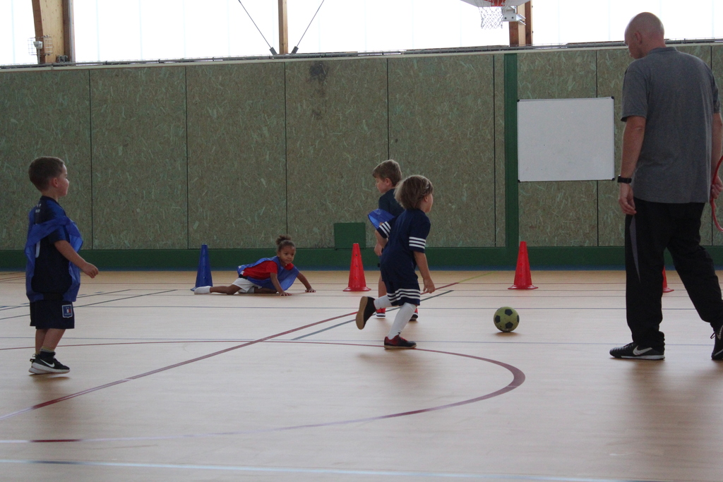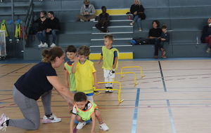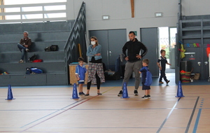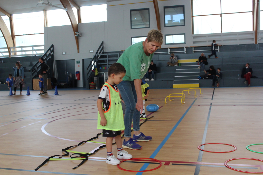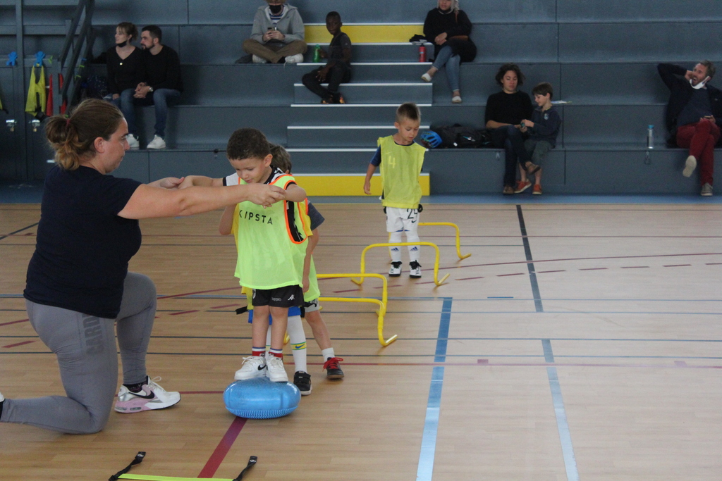 Cette saison ils sont plus d’une vingtaine d’inscrits et certains sont même sur liste d’attente tant ce projet suscite de l’intérêt et de l’engouement à la fois chez les enfants, garçons et filles, mais aussi chez les parents. Ce samedi 18 Kid's étaient présents sous les yeux de leurs parents mais uniquement pour cette première séance. Après un jeu collectif d’échauffement, trois ateliers concoctés par Thomas étaient prévus.