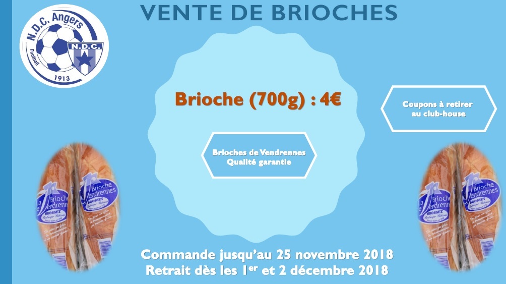 Le club renouvelle son opération annuelle de vente de brioches de Vendrennes. Coupon de commande à télécharger en ligne. Des lots récompenseront les meilleurs vendeurs.
