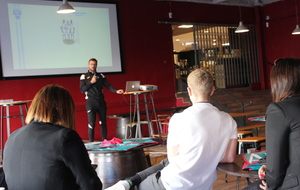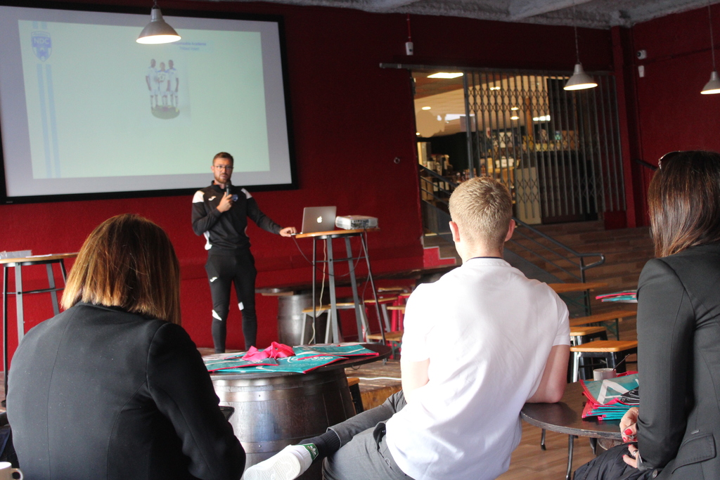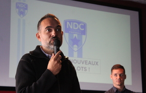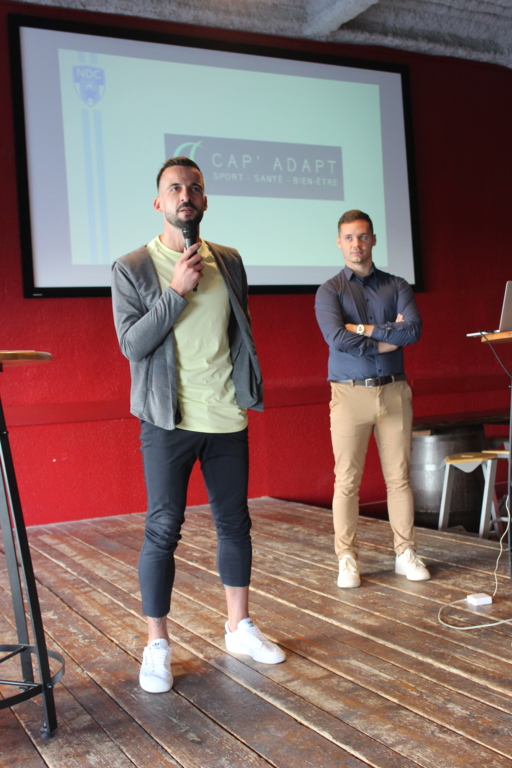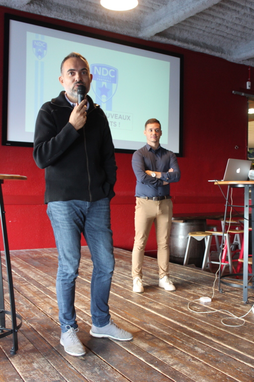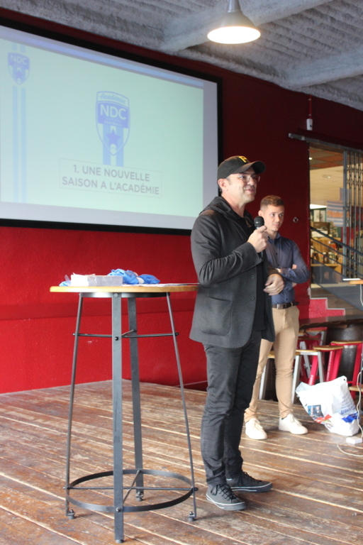 Après une intervention de Thibaut Volant, le responsable de l'Académie, pour nous présenter l'Académie NDC, les nouveautés de cette saison et l'impact humain de ce projet en développement, les nouveaux partenaires ont été présentés tour à tour, les présents prenant la parole. Afin que chacun des partenaires puissent se connaître et se reconnaître, ils sont tous passés sur l'estrade, micro en main, pour promouvoir leur activité et les raisons de leur soutien.