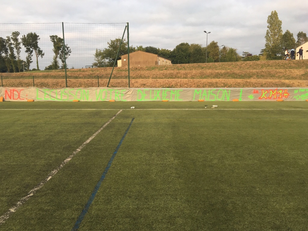 Images de foot en semaine... pas n'importe où... au stade de l'Ecusson à Saint-Pierre Montrevault, notre seconde maison.... Rare et splendide accueil et merci à ce club pour ce qu'il fait et ce qu'il véhicule... Une banderole a été confectionnée et affichée au bord du terrain lors de notre rencontre amicale de mercredi 28 août (remportée 3-2), une banderole qui disait : "NDC : l'Ecusson, votre deuxième maison". Une attention du Kop Malvoisie qui nous a beaucoup touchés.