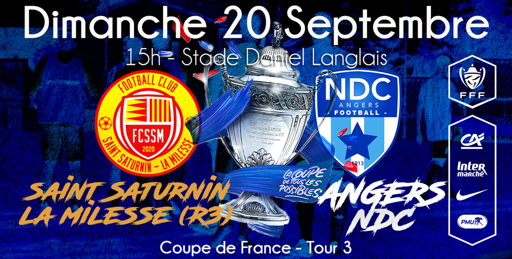 Pour ce faire, ils devront commencer par un déplacement peu évident sur le terrain du FC Saint Saturnin, pensionnaire de R3. Bien que deux divisions inférieures à l'équipe fanion, les Sarthois ont d'ores et déjà éliminé Allonnes JS (R3) et Seiches Marcé AS (R2). Il faudra être concentré et sérieux face aux Sarthois pour passer au prochain tour. Les Bleus sont prévenus !