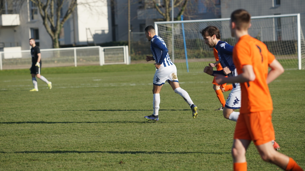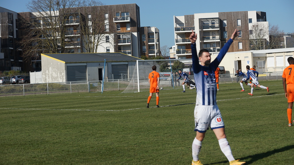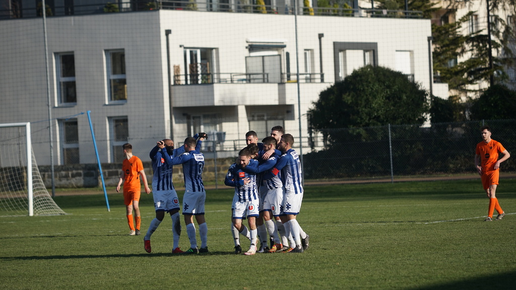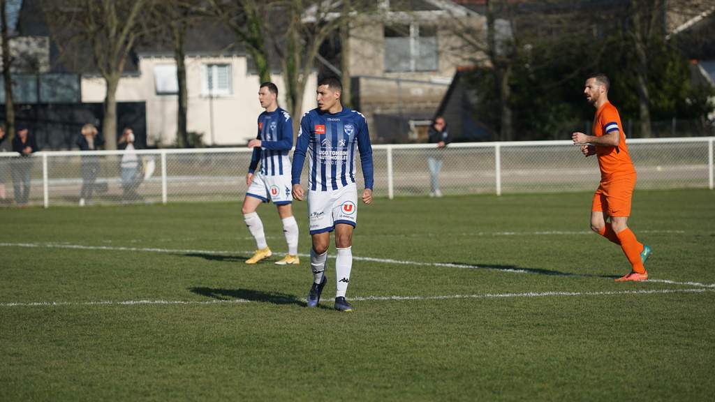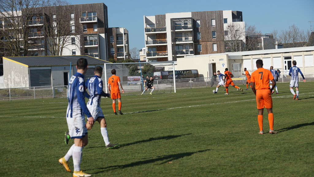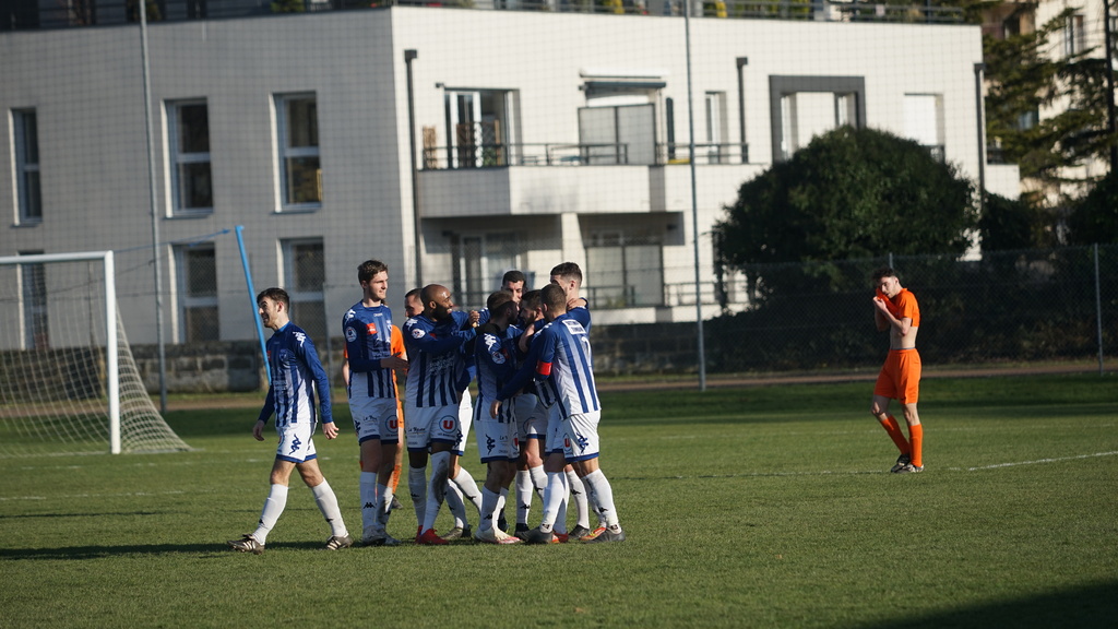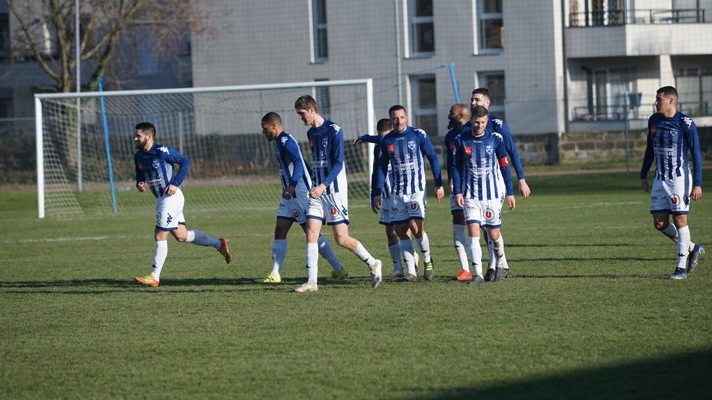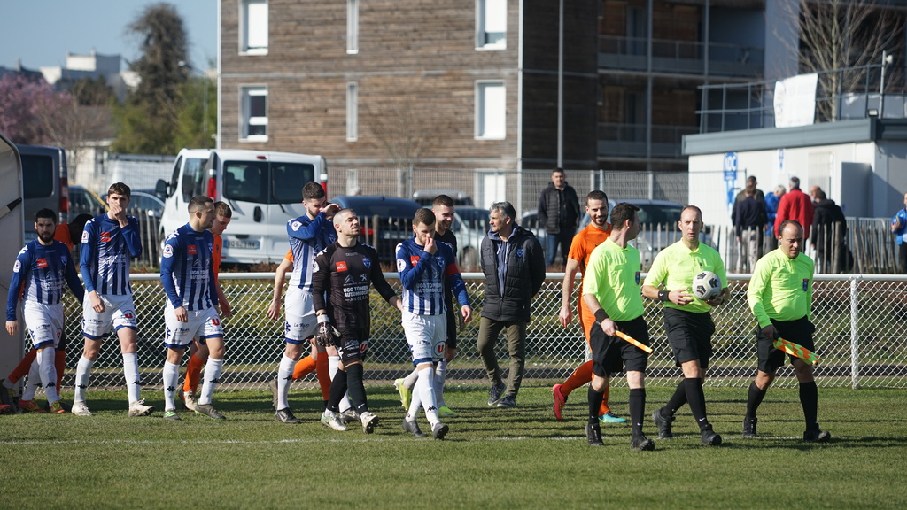 Sérieux dès l’entame de match, les joueurs de Pierre Naudet se sont très vite mis en évidence. Avec un Abdessamad Ougrirane très remuant et pesant sur la défense adverse, les Bleus ont fait mal à leurs adversaires tout au long de la première période. Très bien servi par Geoffroy Levron et Jeanta Lema, Abdessamad Ougrirane s’offrait un doublé d’une frappe puissante (18e) puis d’un lob bien dosé (38e). Bien en place défensivement et dangereux offensivement, les Angevins réalisaient une première période aboutie et maîtrisée.