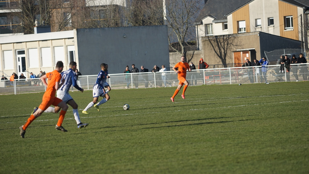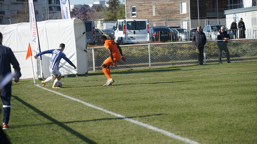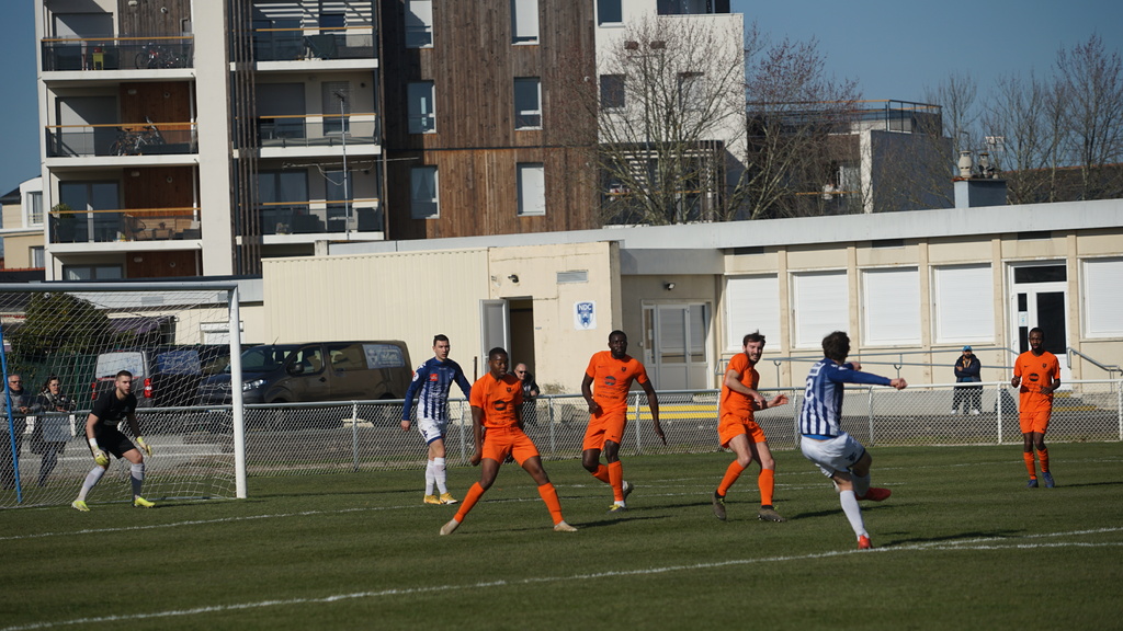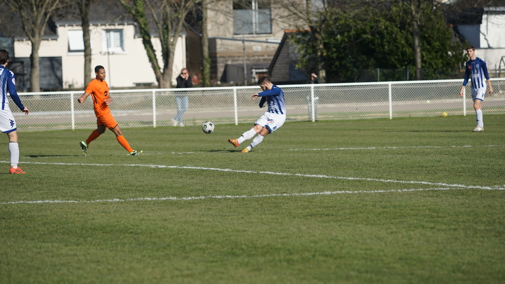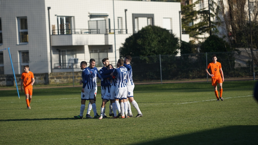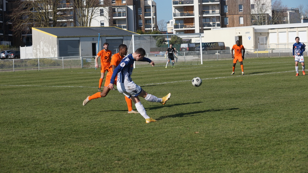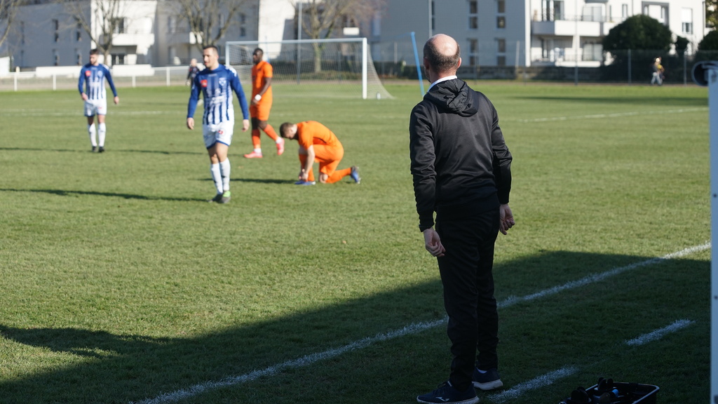 Sérieux dès l’entame de match, les joueurs de Pierre Naudet se sont très vite mis en évidence. Avec un Abdessamad Ougrirane très remuant et pesant sur la défense adverse, les Bleus ont fait mal à leurs adversaires tout au long de la première période. Très bien servi par Geoffroy Levron et Jeanta Lema, Abdessamad Ougrirane s’offrait un doublé d’une frappe puissante (18e) puis d’un lob bien dosé (38e). Bien en place défensivement et dangereux offensivement, les Angevins réalisaient une première période aboutie et maîtrisée.