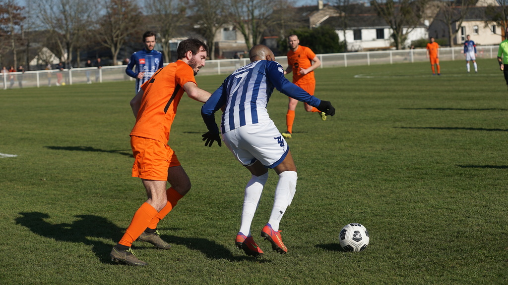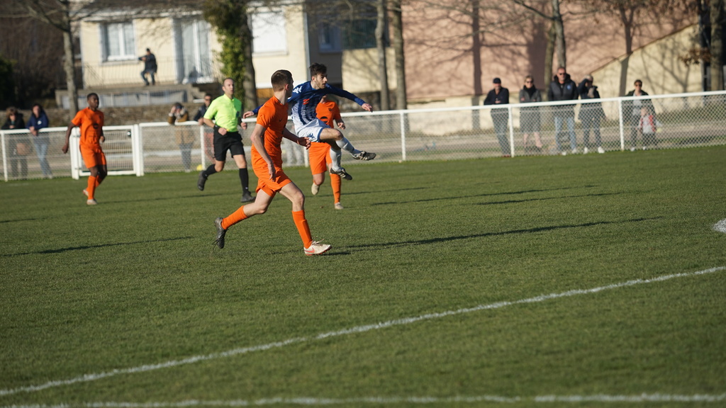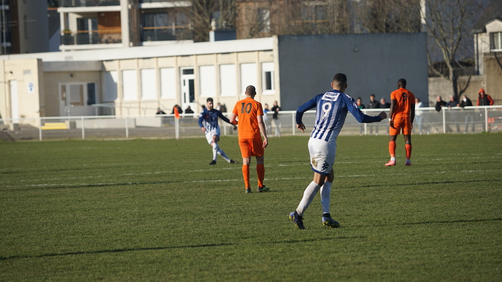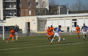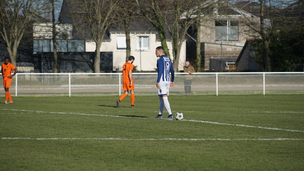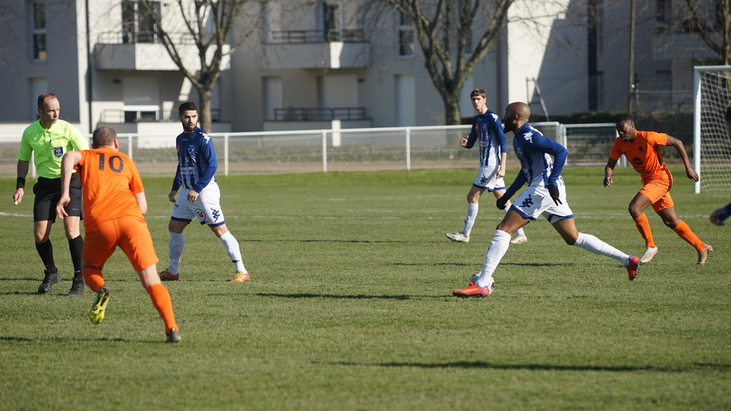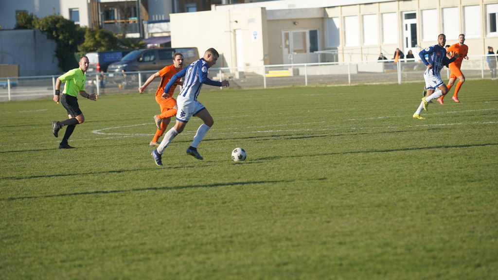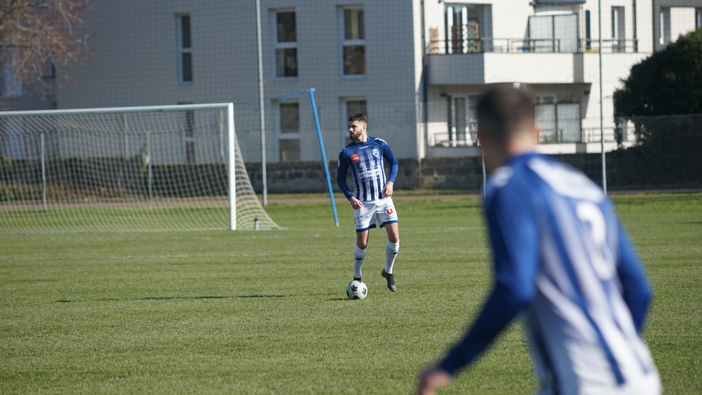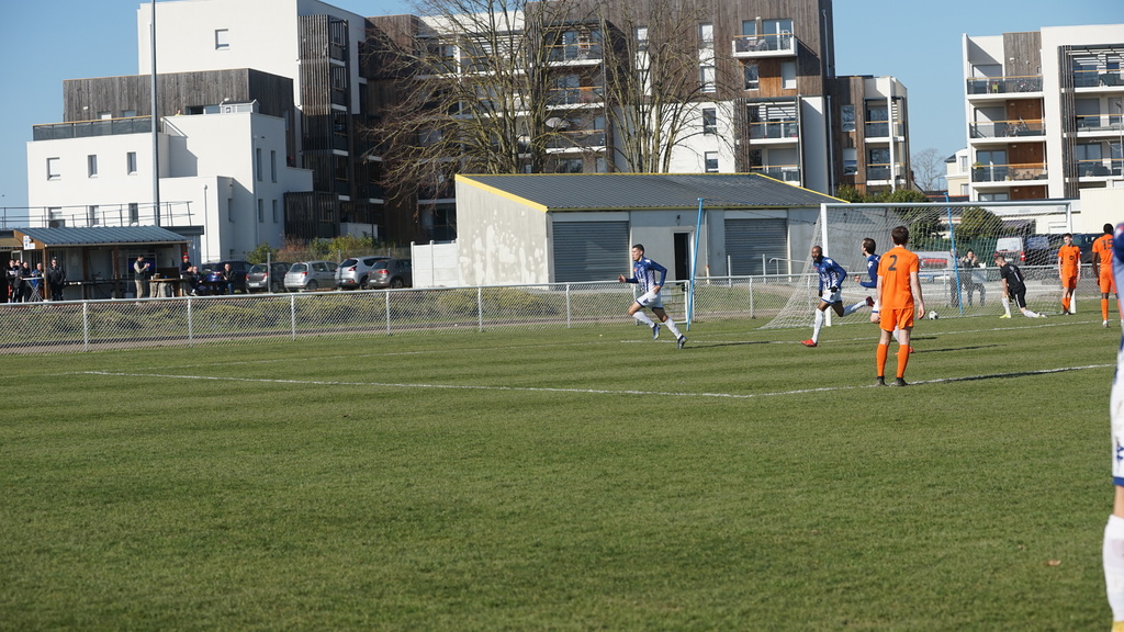 Sérieux dès l’entame de match, les joueurs de Pierre Naudet se sont très vite mis en évidence. Avec un Abdessamad Ougrirane très remuant et pesant sur la défense adverse, les Bleus ont fait mal à leurs adversaires tout au long de la première période. Très bien servi par Geoffroy Levron et Jeanta Lema, Abdessamad Ougrirane s’offrait un doublé d’une frappe puissante (18e) puis d’un lob bien dosé (38e). Bien en place défensivement et dangereux offensivement, les Angevins réalisaient une première période aboutie et maîtrisée.
