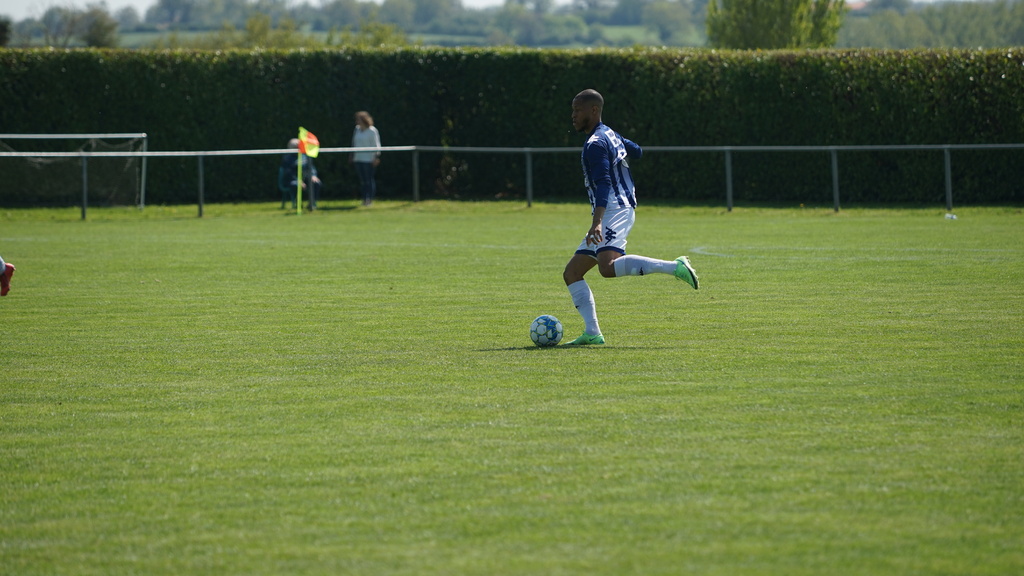 Concernés dès l'entame de match, les Bleus seront vite récompensés. En effet, dès la 8e minute, sur un corner de Quentin Clémenceau, Simon Mahieux déviait au premier poteau et ouvrait le score (0-1, 8e). Ensuite, NDC continuait de dominer le match tout en se créant des situations. Le manque de précision des Angevins empêchait le score d'évoluer. De leur côté, les locaux rentraient petit à petit dans leur match et arrivait de plus en plus à poser le pied sur le ballon. Pour autant, ils ne se montraient pas dangereux.