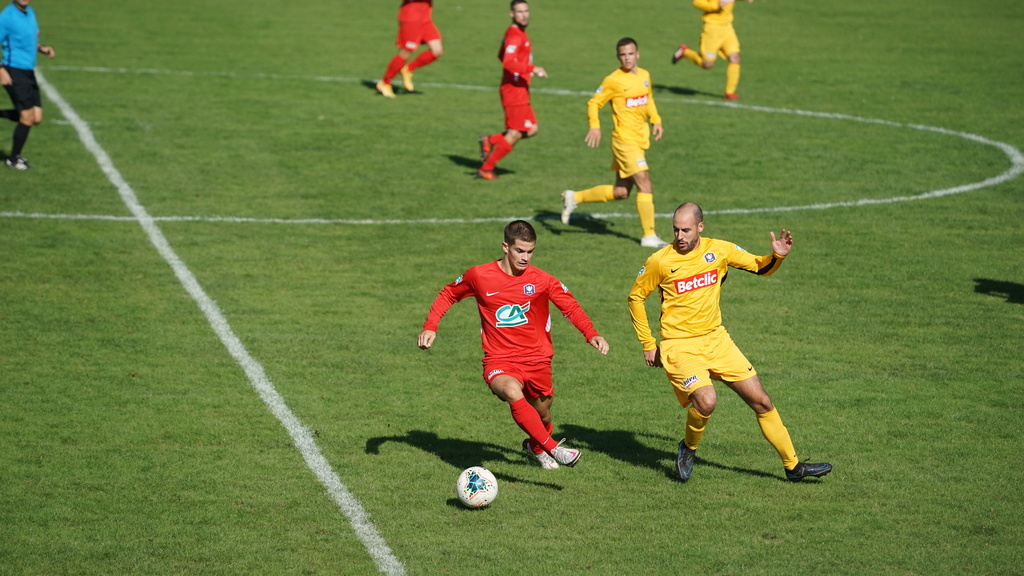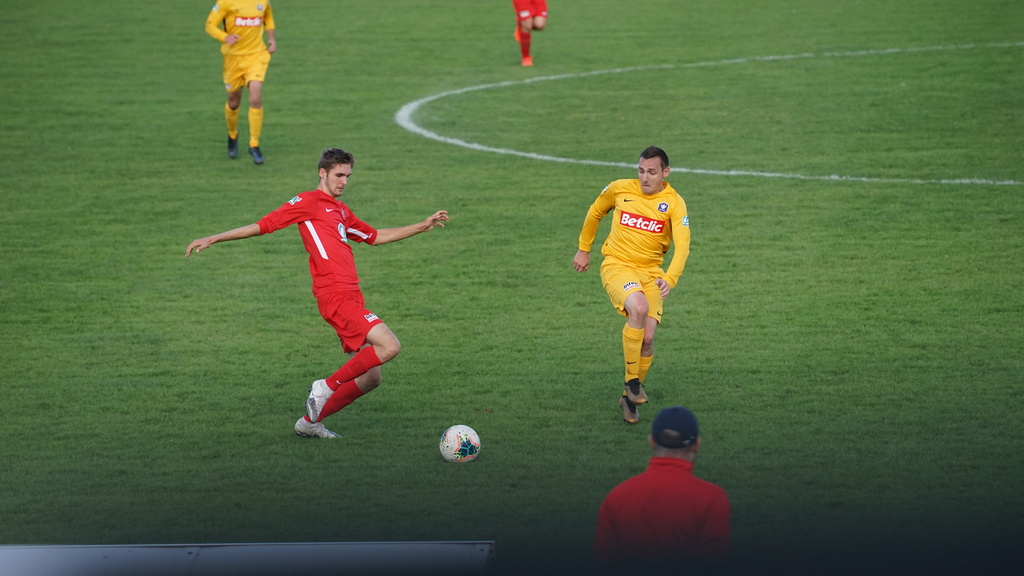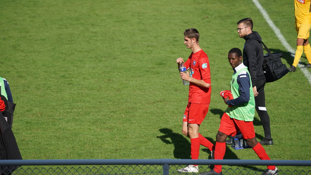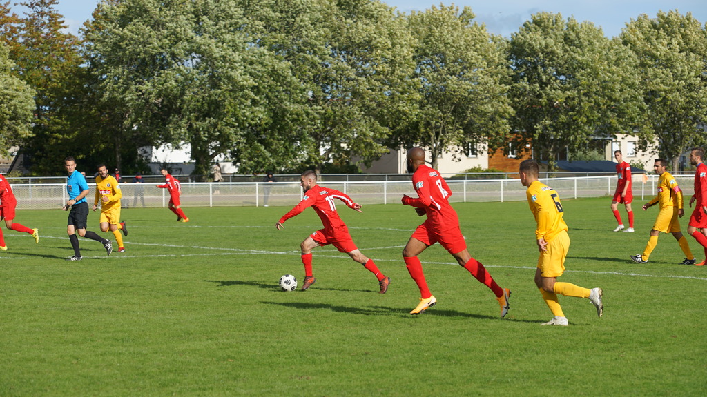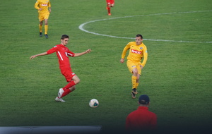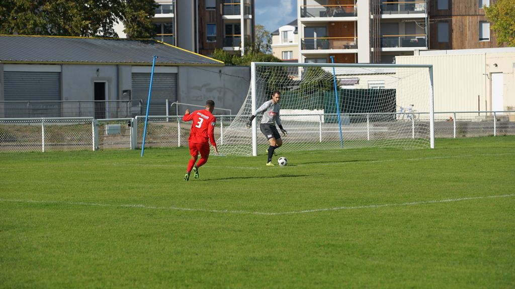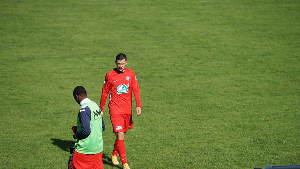 Sérieux dès le début du match, les joueurs de Pierre Naudet sont les premiers à se mettre en évidence. à la 9e minute, Abdessamad Ougrirane avait l’opportunité d’ouvrir le score mais butait sur le gardien vendéen. Dominateur, les Bleus se créaient plusieurs occasions franches mais n’arrivaient pas à conclure. Loan Marin pensait ouvrir le score à la demi-heure de jeu, mais son but était refusé pour hors-jeu. Juste avant la mi-temps, Geoffroy Levron était trouvé dans la surface par Alexis Louvel mais manquait le cadre. Bien en place, les locaux n’étaient pas inquiétés en première période.