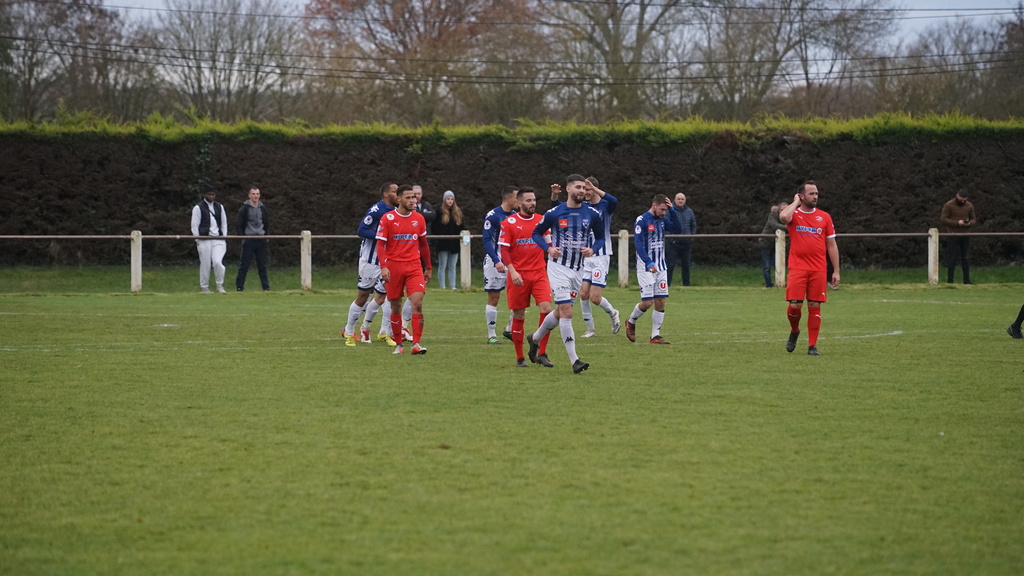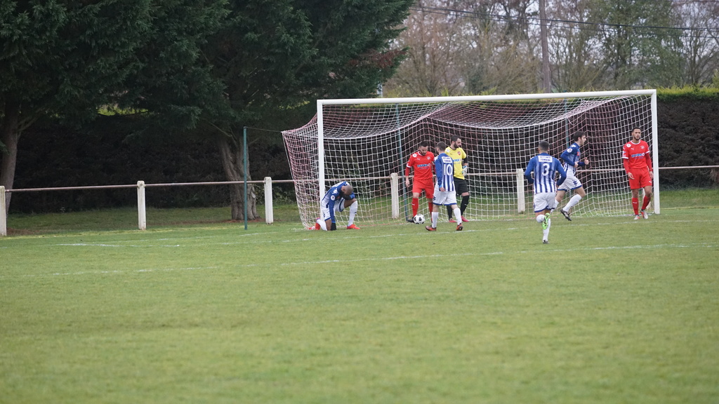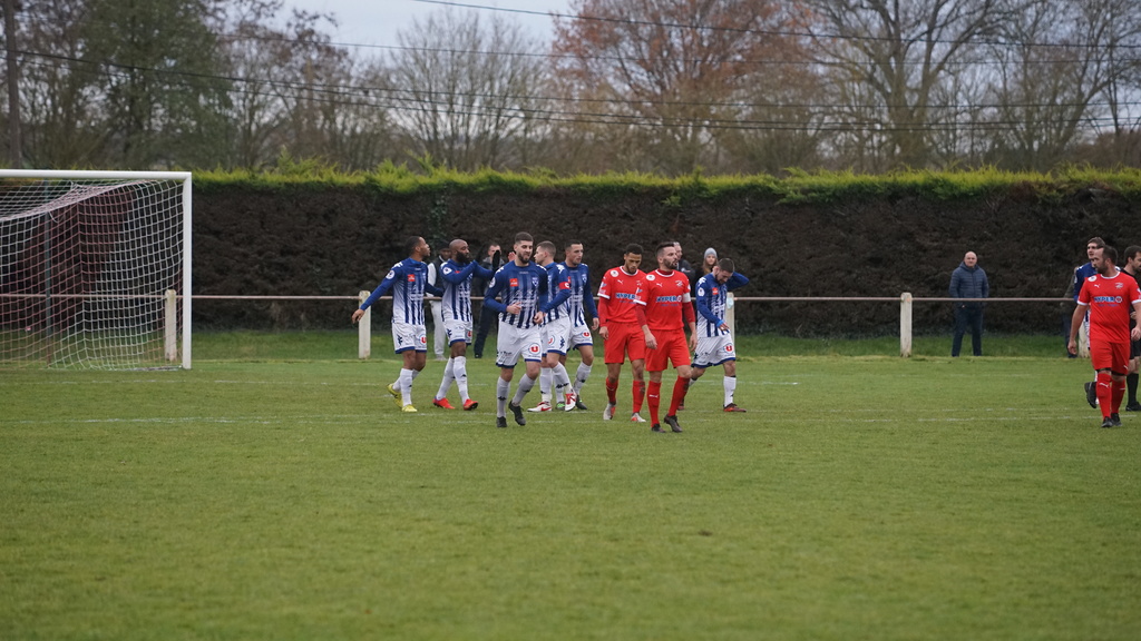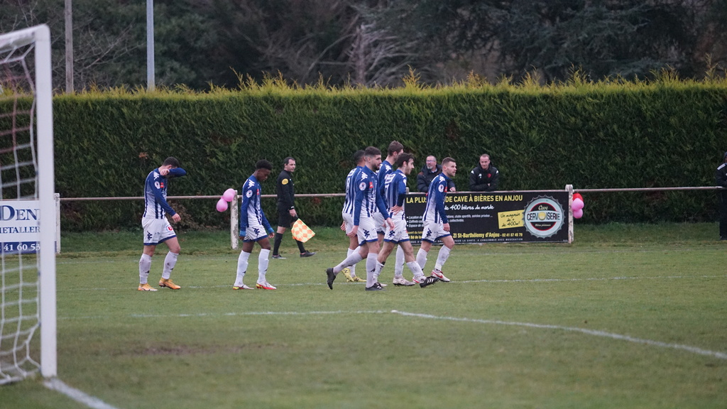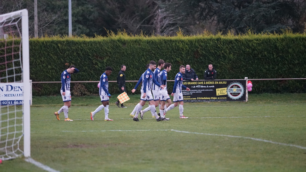 Au retour des vestiaires, les locaux reviennent fort, mais comme en première, les Bleus marquent sur leur première occasion de la période. Sur un long ballon, Geoffroy Levron se présente seul face au but et croise sa frappe du gauche pour faire le break. La deuxième période se disputait au milieu de terrain, les deux équipes ne se créaient pas beaucoup d'occasions. A 10 minutes du termes, les locaux tapaient puis marquaient sur un lob (1-2, 80e). Sur un contre en fin de match, Orsonne Achirafi servait Geoffroy Levron qui venait scellé la victoire angevine (1-3, 92e).