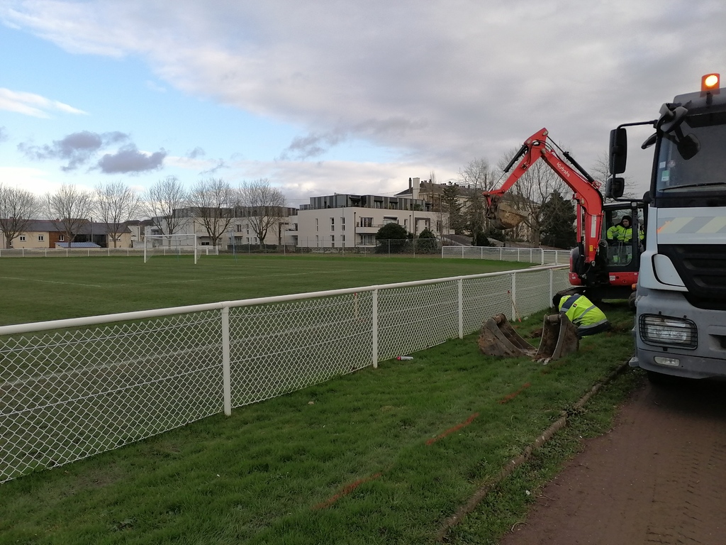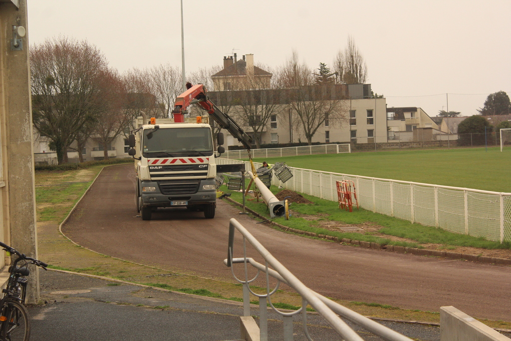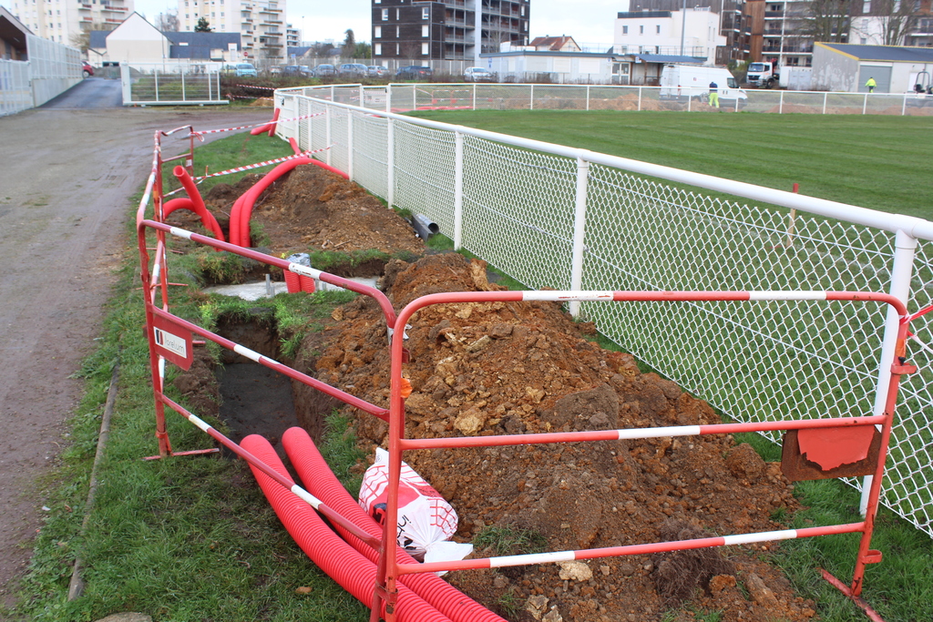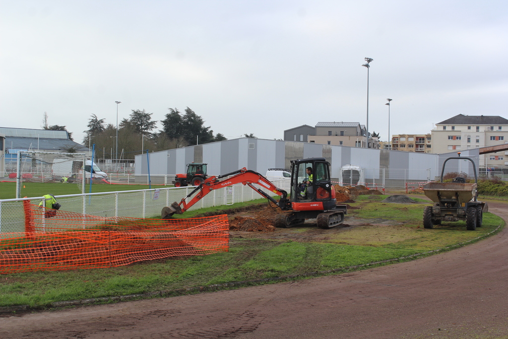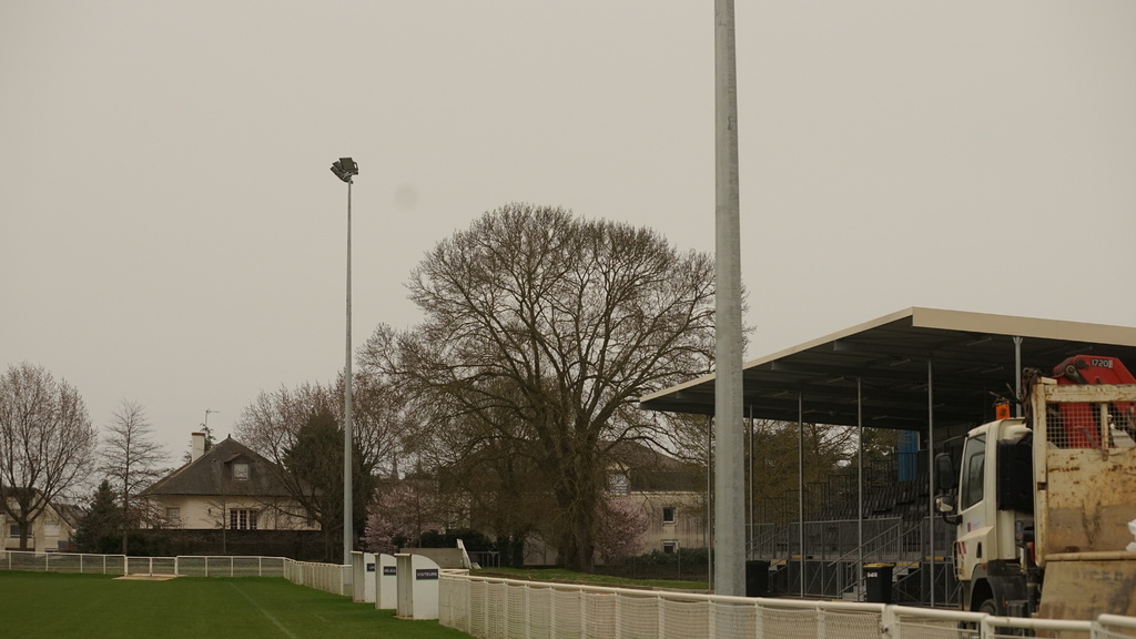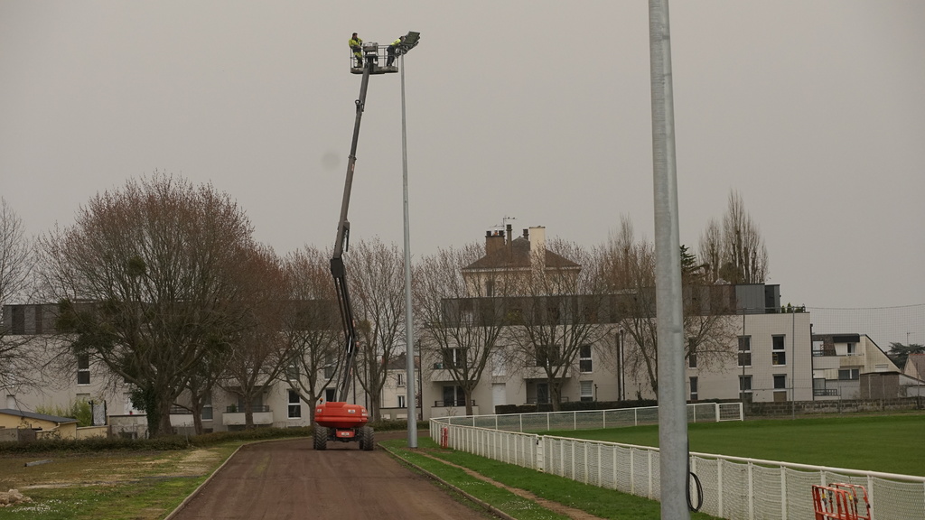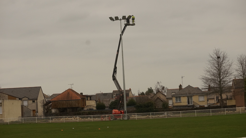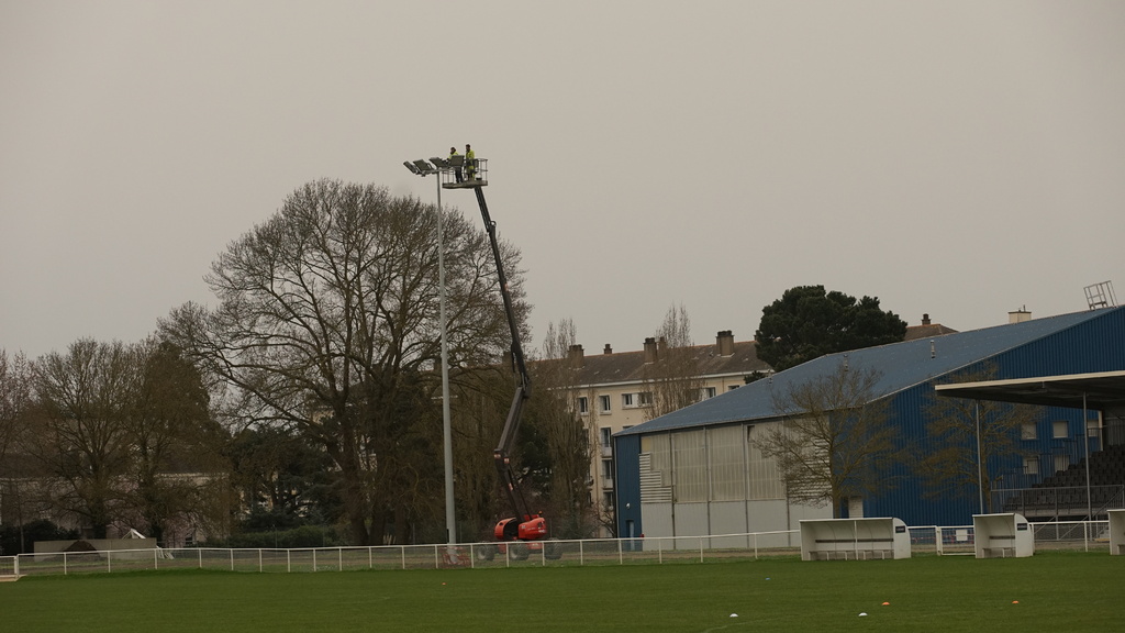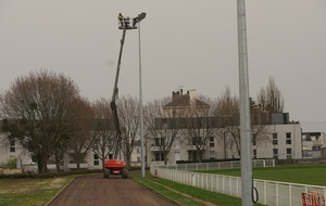 En ce début de semaine au stade André-Bertin, les derniers travaux d'installation de l'éclairage sur le terrain engazonné avaient lui.