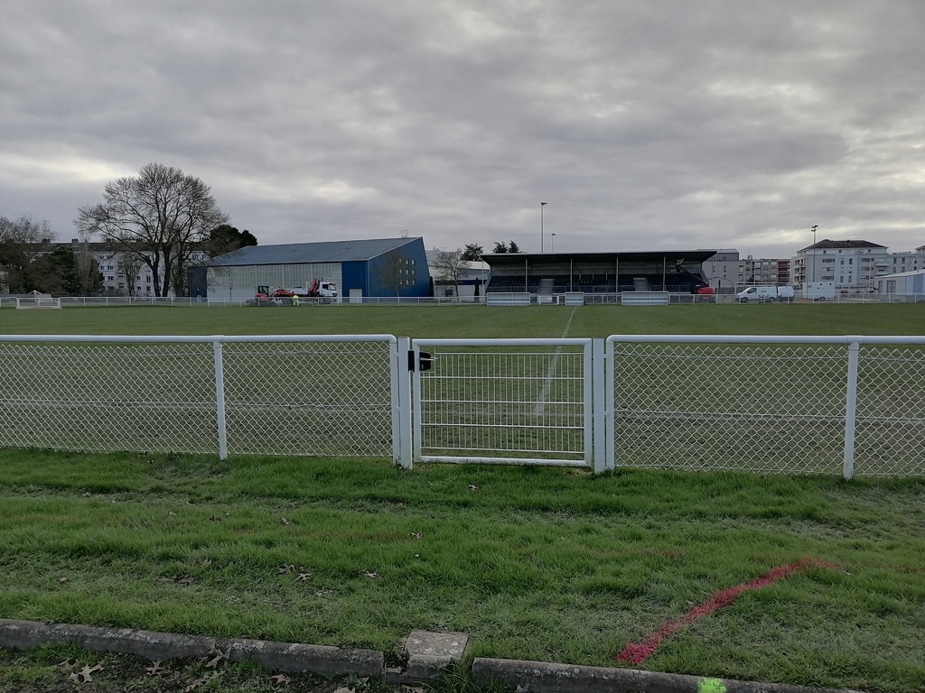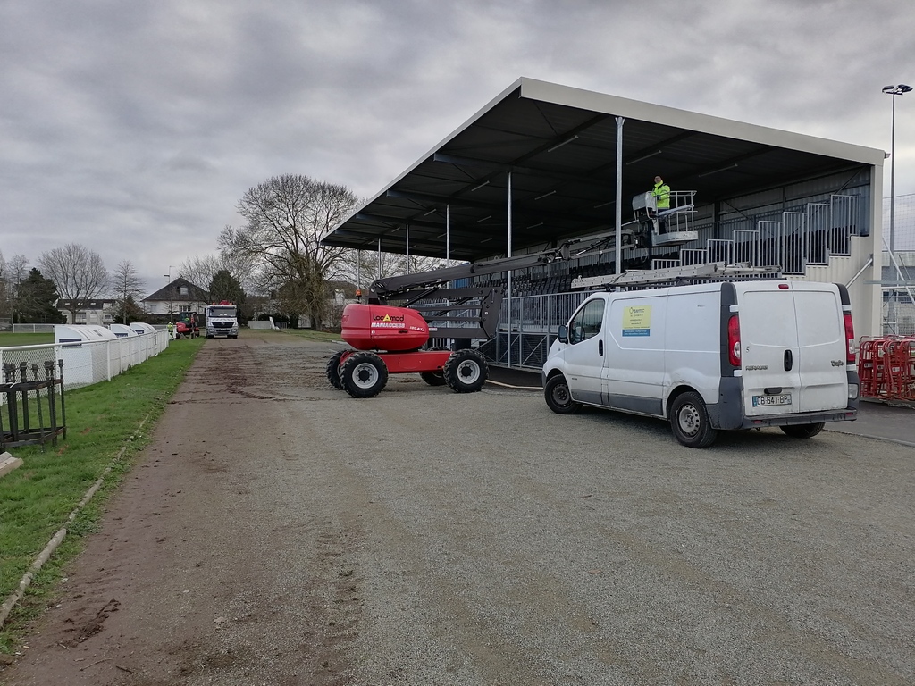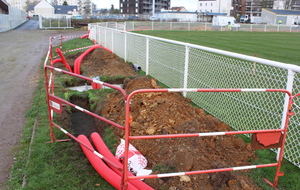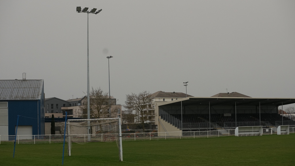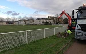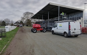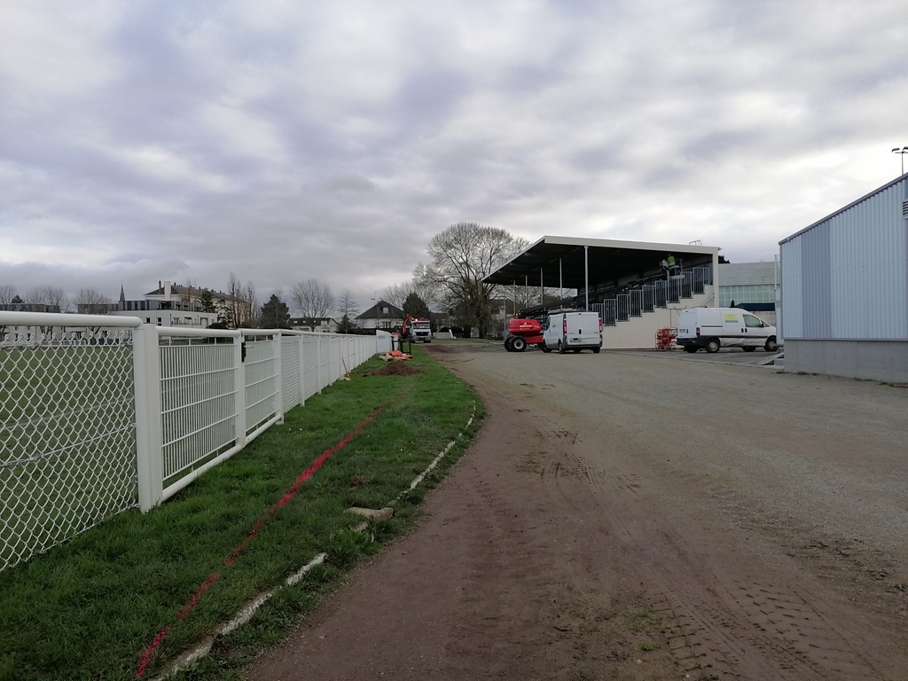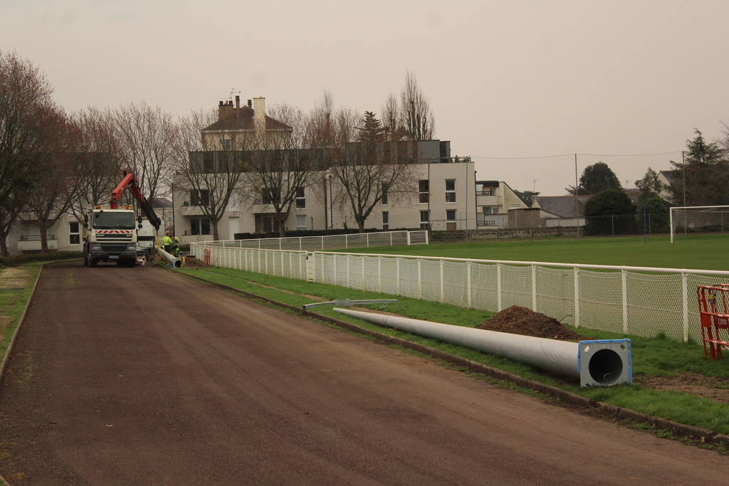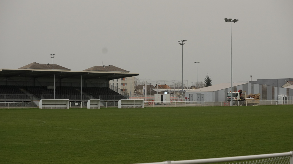 En ce début de semaine au stade André-Bertin, les derniers travaux d'installation de l'éclairage sur le terrain engazonné avaient lui.