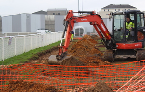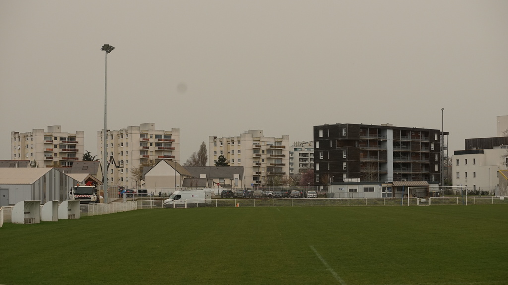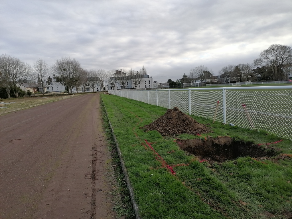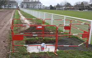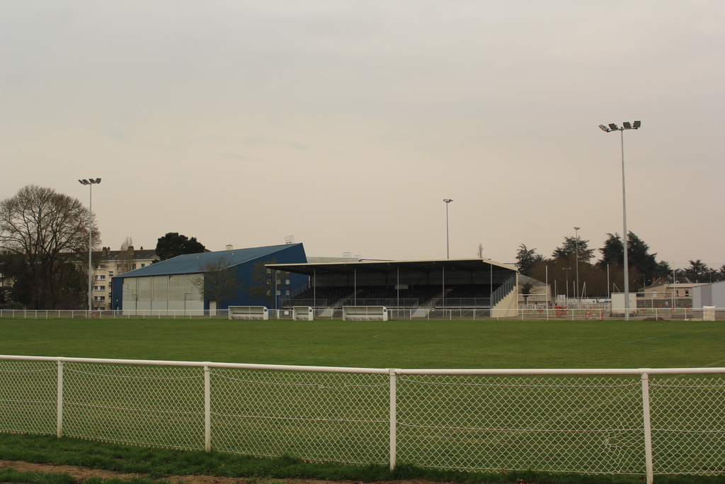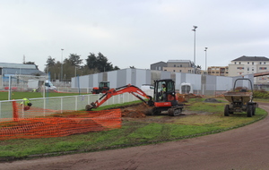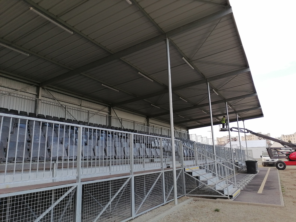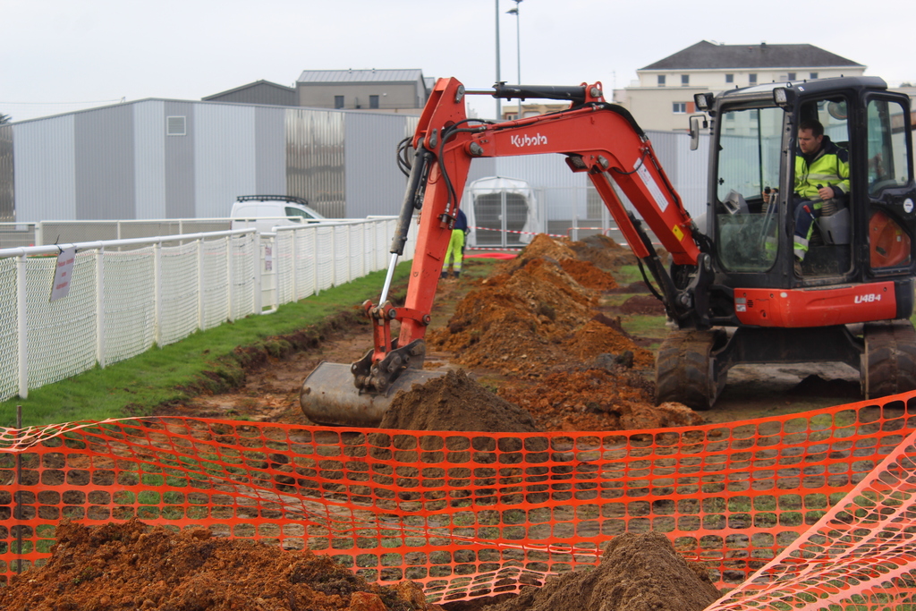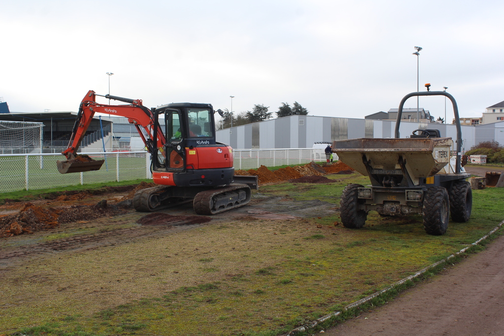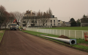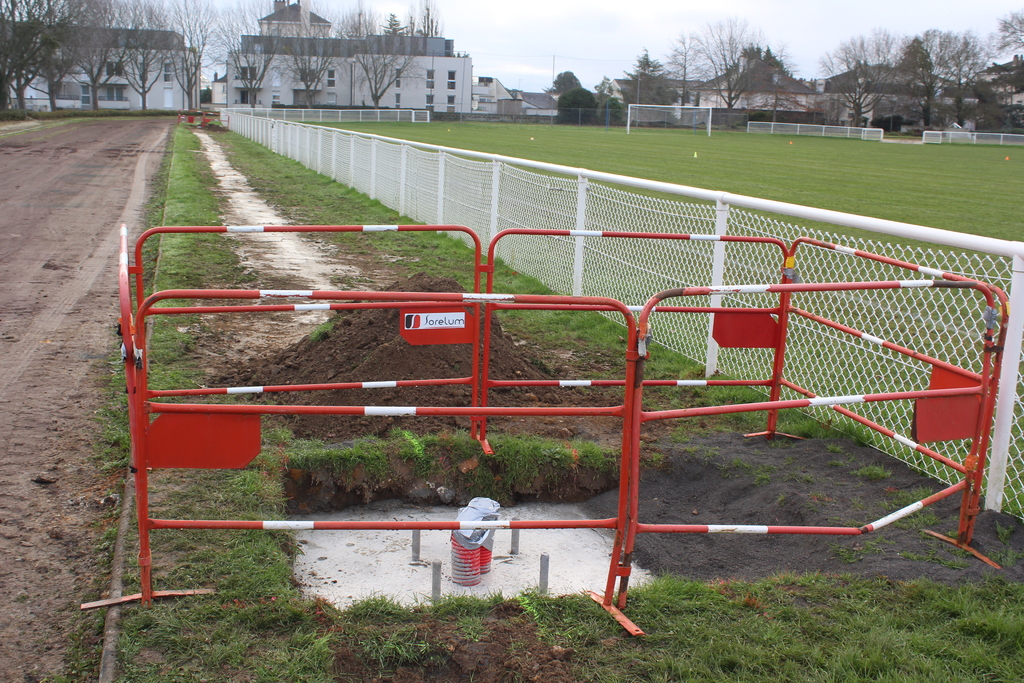En ce début de semaine au stade André-Bertin, les derniers travaux d'installation de l'éclairage sur le terrain engazonné avaient lui.