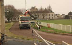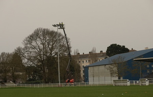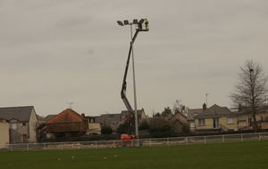 Fiat lux et facta est lux : (« Que la lumière soit, et la lumière fut »)... Débutés fin janvier avec une première phase d'acheminement des cables électriques et de fondation, les travaux pour l'éclairage du terrain d'honneur touchent à leur fin. En effet, ce lundi après-midi et ce mardi matin, les quatre pylônes et leurs éclairages ont été mis en place. Dernière phase à venir, la phase de test de ces éclairages. Au cours du prochain mois, plusieurs tests seront effectués pour vérifier la puissance de l'éclairage et homologuer le terrain pour la pratique nocturne du football aux niveaux Régional 1 et National 3.