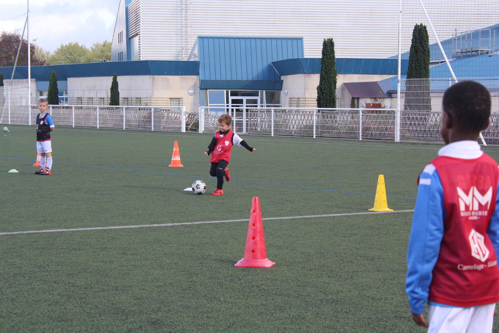Plus de 55 enfants pour cette première journée de stage "foot à la carte" au stade Bertin. Les stagiaires ont commencé ce matin par une première séance de perfectionnement technique. Ce midi, pique-nique au club house et jeux libres (baby-foot, tennis de table, jeux de société) et chaise musicale pour les plus grands. Cet après-midi, seconde séance : biathlon technique avec des questions sur le Programme Educatif Fédéral et seconde séance pour les U7 et U9 à base de jeux scolaires et matchs.