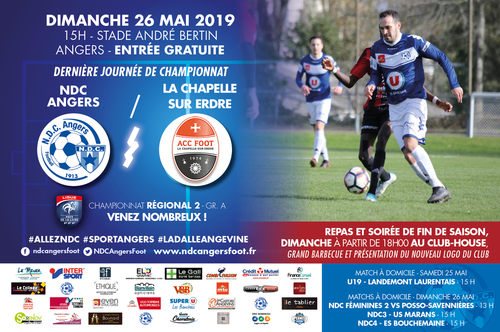 Les championnats 2018-2019 prennent fin pour la majorité des équipes ndcéennes. Promue en R1, l'équipe fanion termine à domicile devant La Chapelle-sur-Erdre à 15 h dimanche 26 mai.