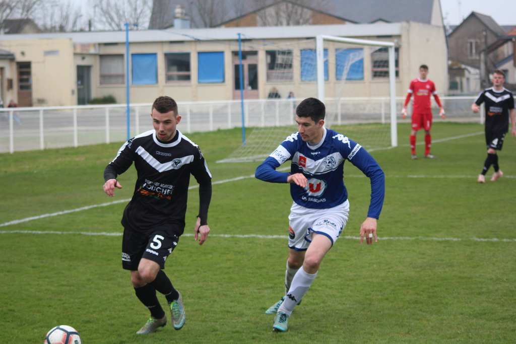 L'équipe fanion a été tenue en échec par l'équipe réserve des Voltigeurs de Chateaubriant. Ce sont les visiteurs qui ont ouvert le score en première mi-temps, à la 37e minute sur un beau coup franc, véritable première menace qui fut décisive. C'est dès l'entame de la seconde période que Lenny Bien-Aimé a égalisé. Les bleus se sont ensuite montrés les plus dangereux, se procurant plusieurs occasions. Cela ne fut pas suffisant. Les protégés de Pierre Naudet conservent cependant leur place de leader.