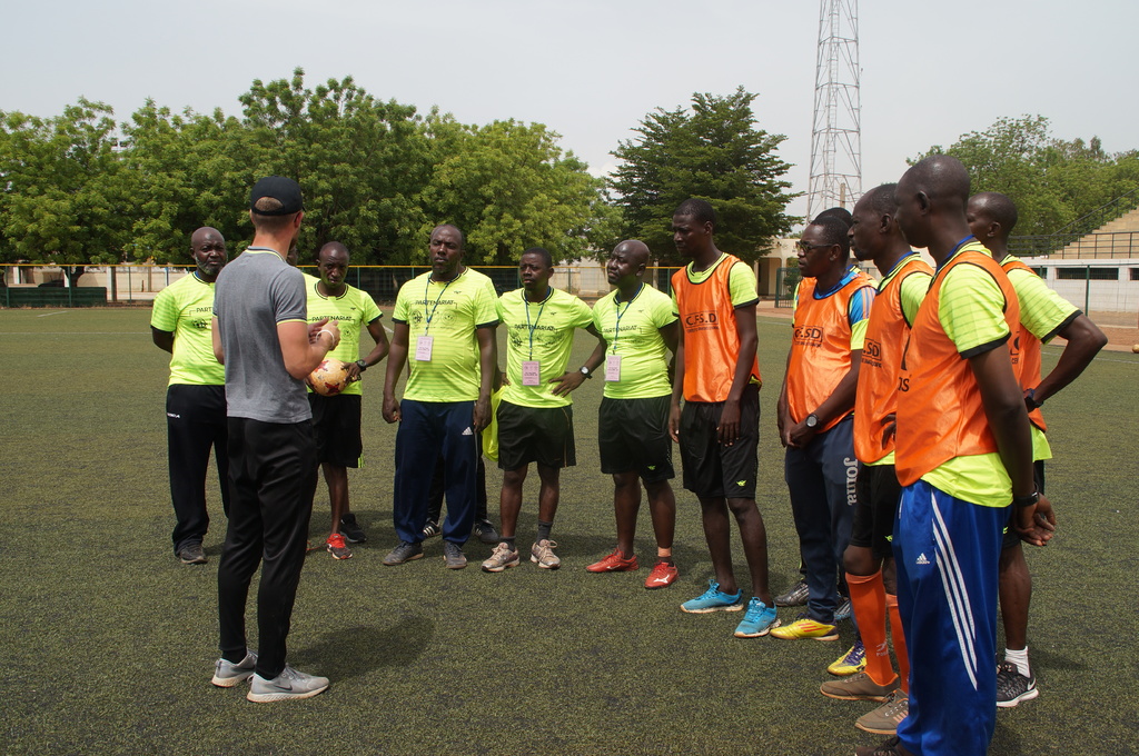 Temps en salle, séances sur le terrain, travaux de groupe, observations… sont le quotidien des stagiaires. Sous le soleil de Bamako, la bonne humeur et l’envie de partager accompagnent la mission réalisée. Les conditions de travail sont très agréables grâce au soutien important des partenaires de L’ACEFOOT sur l’organisation logistique.