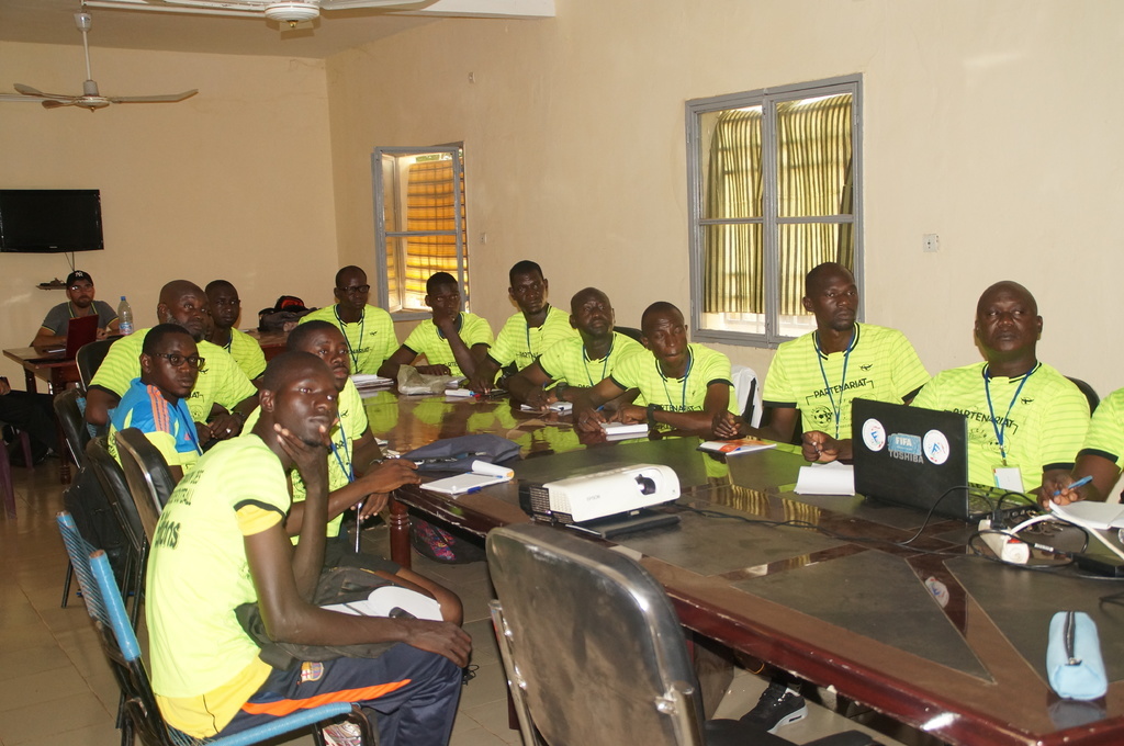 Quinze éducateurs maliens sont entrés en formation (niveau 3) à partir du mardi 2 juillet pour trois journées complètes. Les éducateurs présents ont débuté l'aventure en 2015 lors de la première venue de Pierre Naudet à Bamako. Lors de ces trois journées intenses de 7h, il y a une alternance des contenus pédagogiques avec des temps de terrain, des temps en salle et des travaux de groupe.