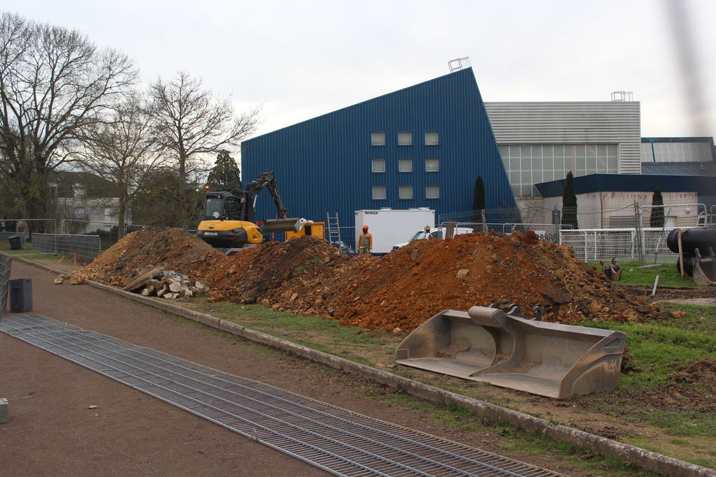 A l'approche de la fin des travaux pour les nouveaux vestiaires, cette semaine, les travaux pour la mise en place d'une tribune stade Bertin ont débuté.