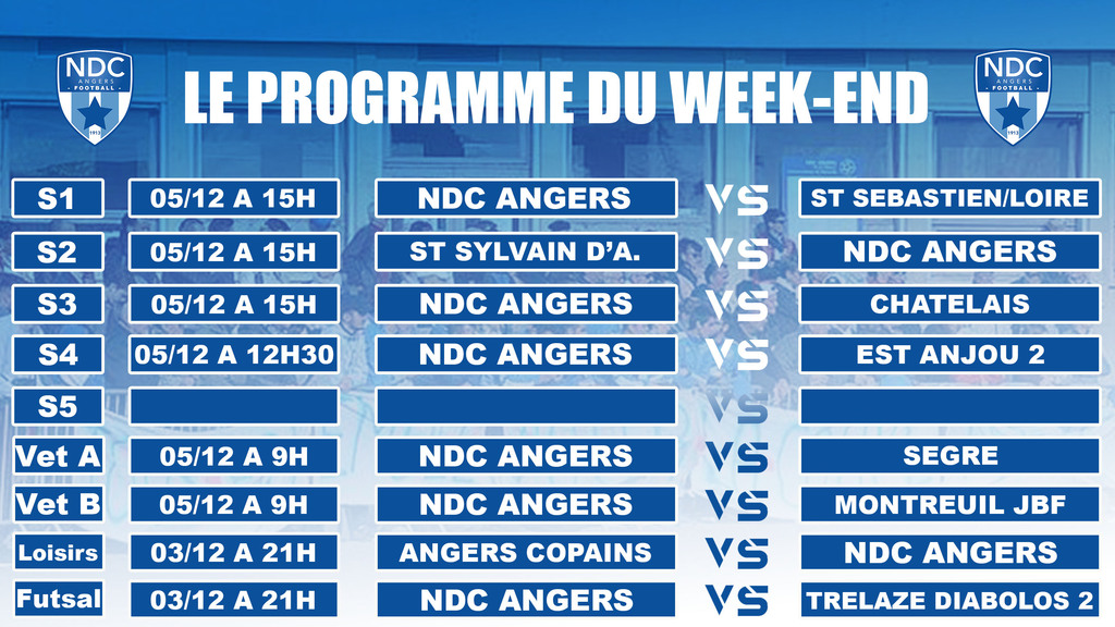 Samedi, sept équipes jeunes occuperont le complexe de 9h30 à 19h. les U12A ouvriront le bal avec la réception du Lac de Maine, tandis que les U18R2 et la U17D1 clôtureront cette journée respectivement face à La Suze/Roëze et le Foyer de Trélazé.