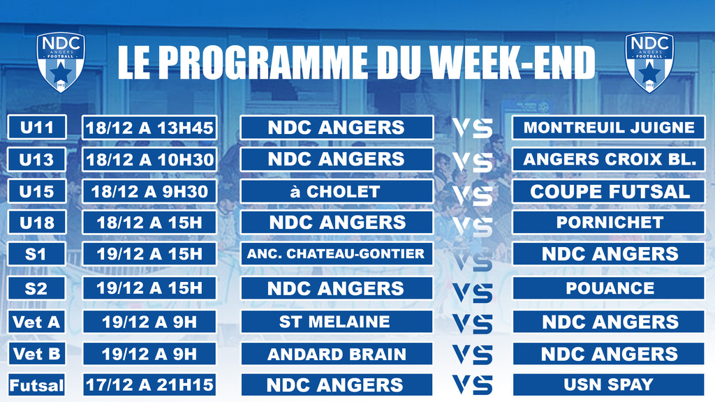 L'équipe fanion et l'équipe futsal feront leurs entrées en Coupe des Pays de la Loire. Les joueurs de Pierre Naudet se déplaceront sur le terrain de l'Ancienne de Château-Gontier pour y disputer le 5e tour de la compétition. Un choc entre équipes de Régional 1 Intersport qui ne jouent pas dans le même groupe mais qui se sont déjà rencontrées lors de la saison 2019-2020. A ce niveau, avantage à NDC, les deux équipes s'étaient séparées sur un match nul et vierge sur le terrain de Château-Gontier et les Bleus l'avaient emportés 1-0 lors du match retour à Bertin. NDC aura à coeur de confirmer sa bonne fin d'année en allant chercher une qualification sur le terrain d'un solide adversaire.