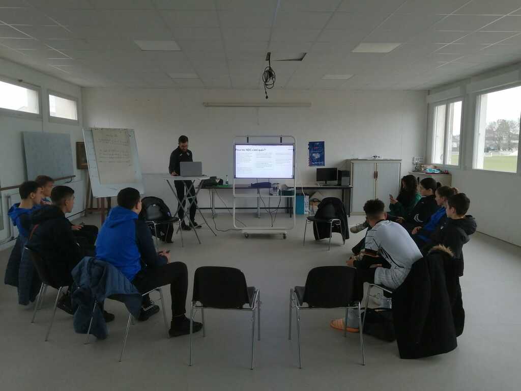 En ce mercredi de vacances scolaires, 9 jeunes licenciés ndcéens, sur les 15 qui composent le Conseil des jeunes 2022/2023, étaient réunis pour un échange d'une heure autour de leur vision du club et de son avenir. Sous la houlette de Benoît Dougé, membre du Comité Directeur en charge du pôle Club Lieu de Vie, et Thibaut Volant, directeur de l'Académie, la réunion a débuté par un moment d'inclusion entre les jeunes. Puis, chaque jeune a pu donner son sentiment sur ce que représente pour lui NDC :