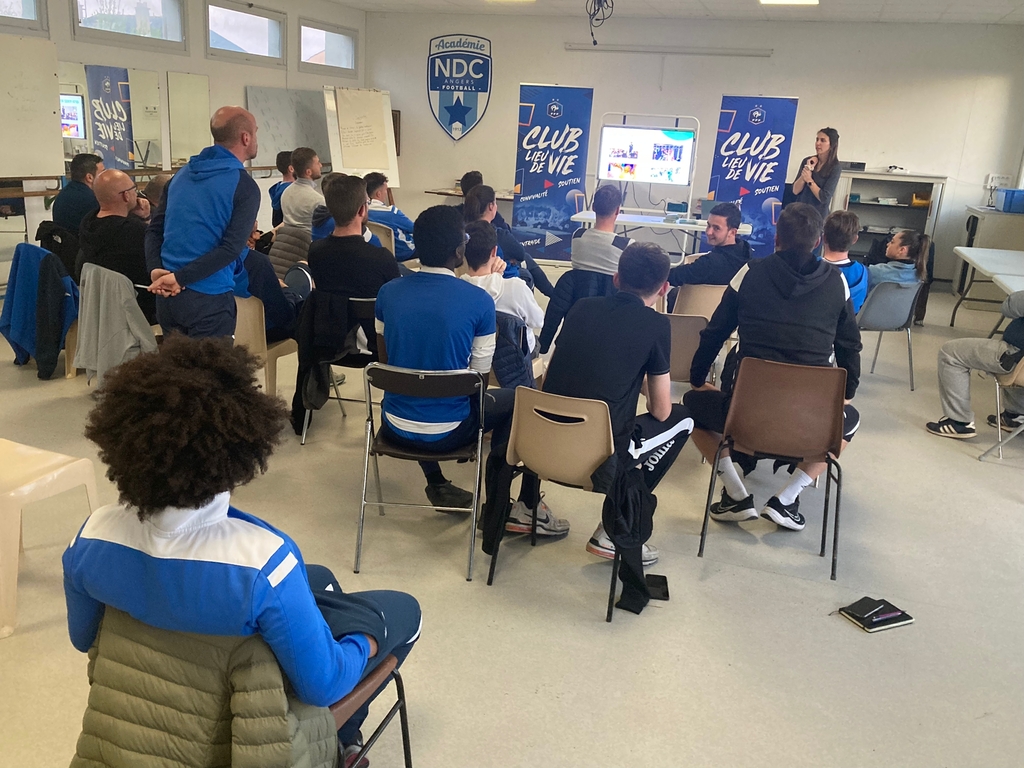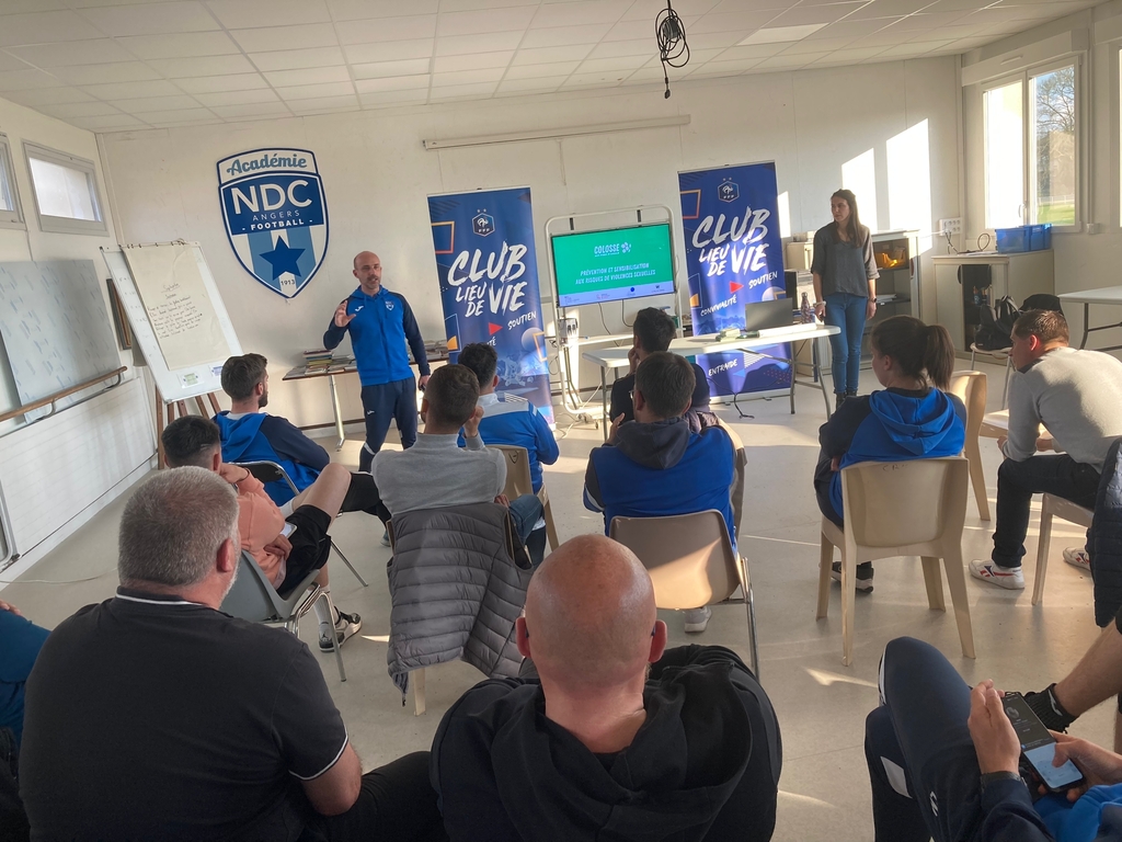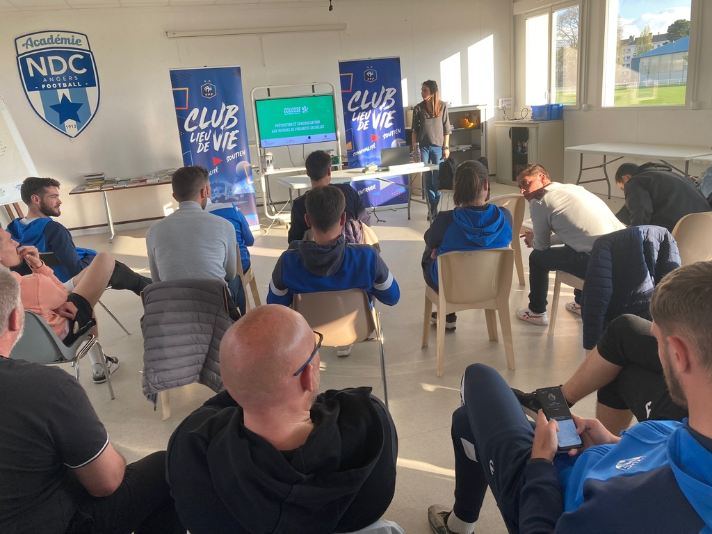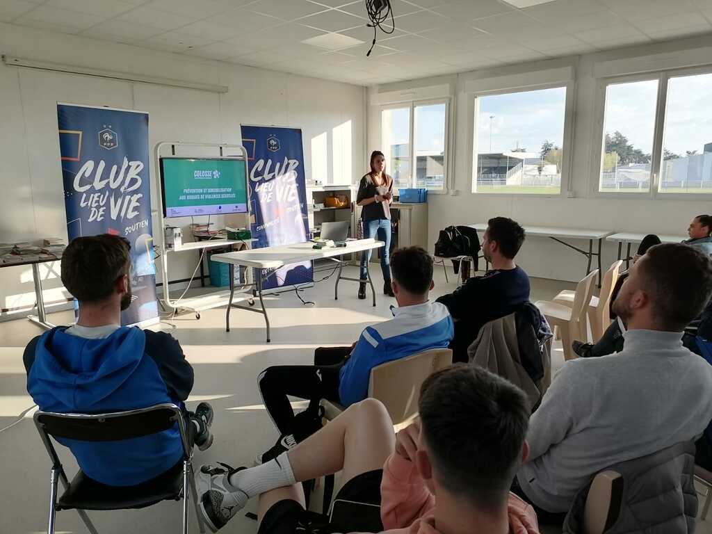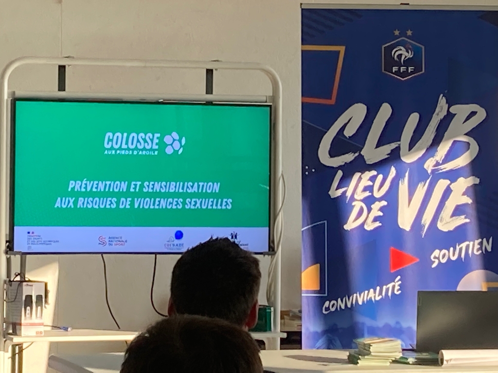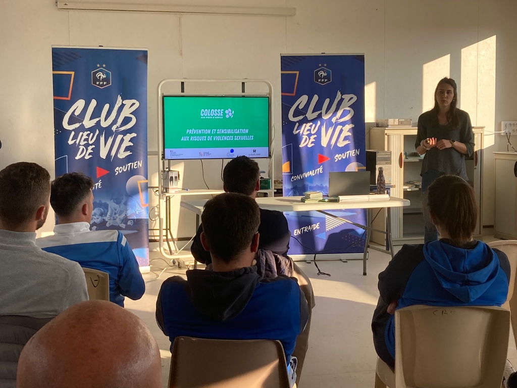 Intervention auprès des éducateurs du club de l'association Colosse aux Pieds d'Argile lundi 17 avril 2023 sur les violences sexuelles, le bizutage et la pédocriminalité.