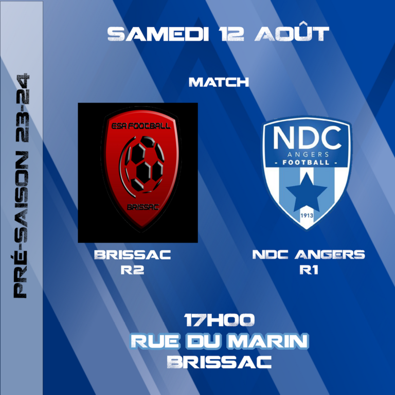 Le match amical entre Brissac et NDC est avancé de 1h. Il aura lieu à 17h00 à Brissac le samedi 12 août