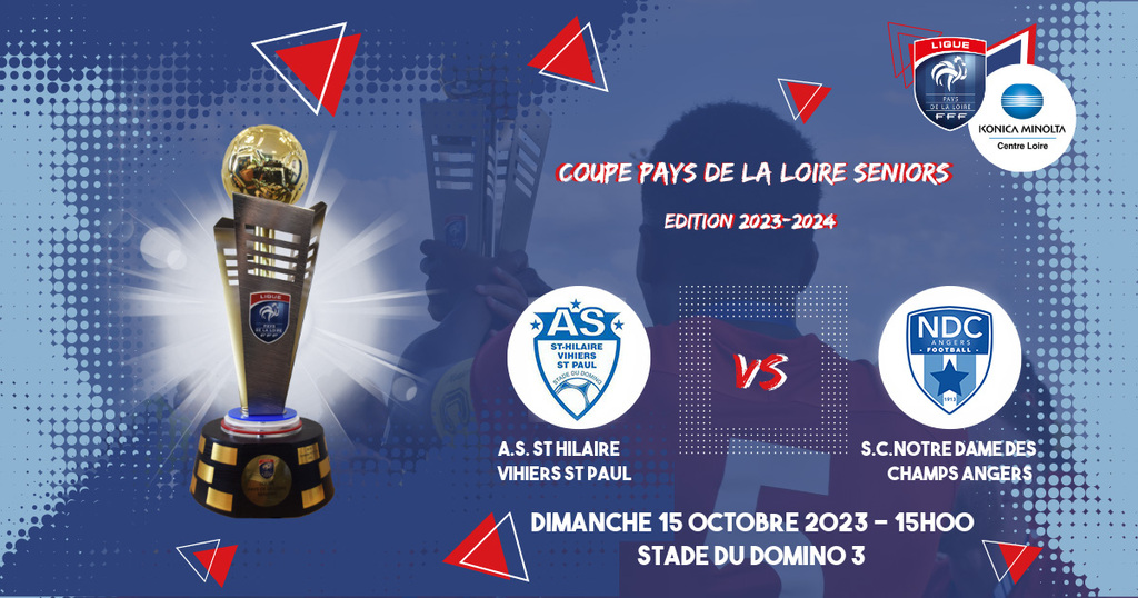 Coupe des Pays de la Loire 🏆 Après un troisième tour réussi, notre équipe fanion continue son chemin en Coupe des Pays de la Loire face à St Hilaire Vihiers St Paul 💥 Match à 15h00 à l'extérieur. 💙